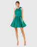 Make a statement in this stunning mini dress. Crafted from luxurious charmeuse satin, this dress features a full skirt and a playful bow at the neckline.