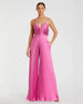 Pink Pleated Plunge Neck Wide Leg Jumpsuit