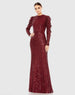Red Sequined High Neck Puff Long Sleeve Column Gown