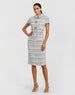 White Fitted Boucle  Short Sleeve Button Up Midi Dress