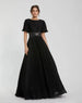 This elegant gown features flutter sleeves, a flattering ballgown silhouette, and shimmering lurex fabric. Perfect for any special occasion, the short flutter sleeves add a touch of romance while the shimmering fabric catches the light for a stunning look.