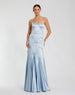 Blue Strapless Satin Trumpet Dress With Bow Details