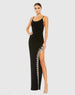 Black Rhinestone Encrusted Side Slit Cami Bodycon Gown