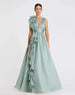 Green Ruffle Shoulder V-Neck Chiffon Gown
