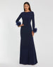 Navy Long Sleeve Fitted Jersey Gown With 3D Flowers