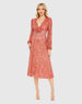 Red Sequined Puff Sleeve Wrap Over A Line Dress