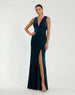 Blue Velvet Pleated Sleeveless Plunge Neckline Gown