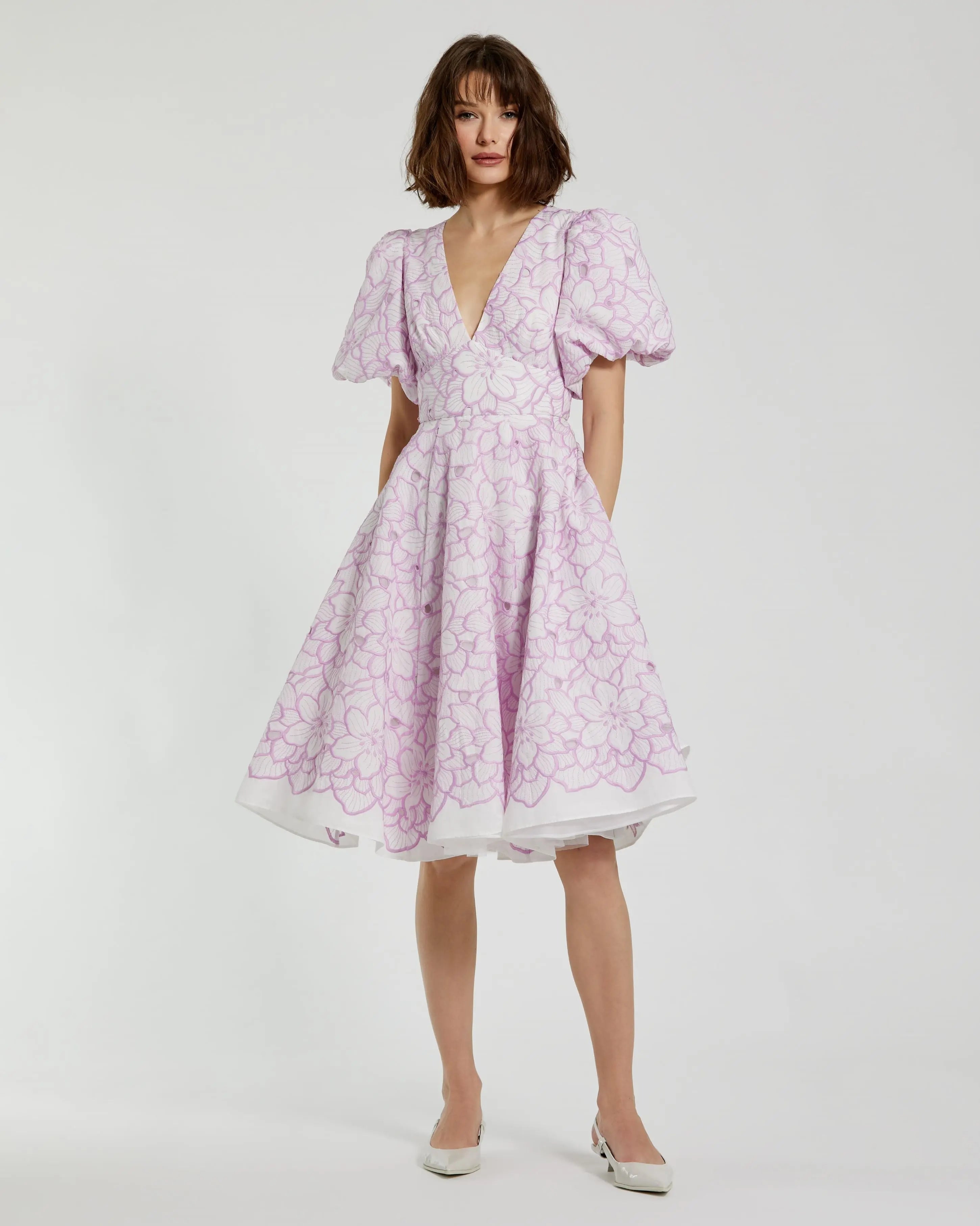 Embrace feminine charm in our Embroidered Floral Puff Sleeve Dress. Crafted from intricate floral-embroidered fabric, this dress exudes vintage-style elegance. With playful yet sophisticated puff sleeves and a flattering silhouette it's a perfect blend of comfort and style. Perfect for both casual outings and special occasions, this dress is a versatile addition to any wardrobe.