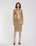 Shine in style with our Beaded Georgette Long Sleeve Midi Dress, featuring metallic sequin details and a sleek, tailored fit. A timelessly sophisticated choice, perfect for cocktail parties and formal events.
