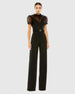 Belted Illusion High Neck Cap Sleeve Jumpsuit
