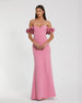 Make an entrance with this pretty formal gown. The off-the-shoulder petal detail adds a touch of femininity and sophistication. Perfect for a formal event or special occasion.