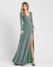 Light-catching Lurex adds sparkle without the weight of beads or sequins. This gorgeous gown is our dream formal pick for fall, fashioned with a surplice bodice, long sleeves and pretty pleats. A high leg slit highlights the swishy, feminine shape of a gown made for getting down on the dance floor — and turning heads.